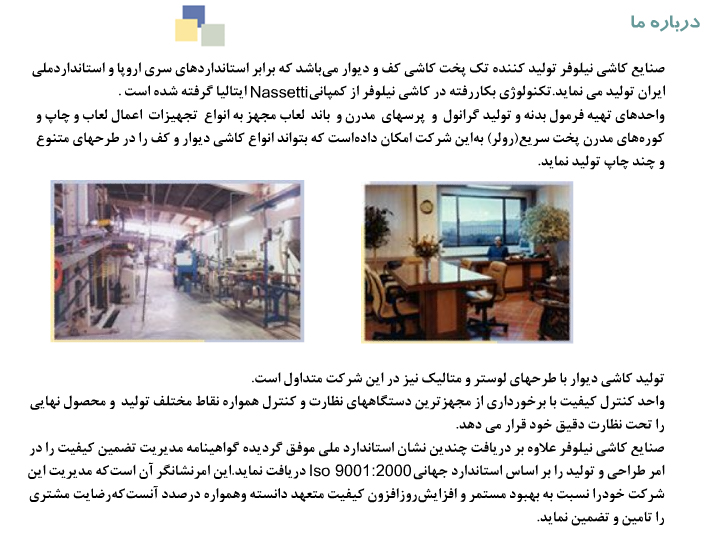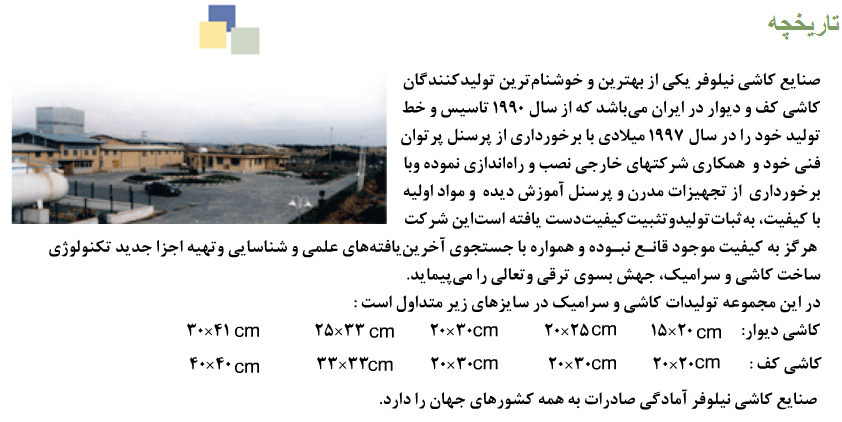 | بيرجند- شهرک صنعتی- صنايع کاشی نيلوفر | نشانی کارخانه | ||||